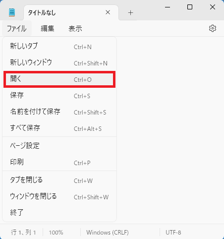 起動したら、ファイル→開くをクリックすると、ファイル選択画面がでます。